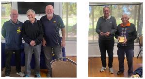 Photo of our Wimmera Exec Committee Receiving the Trophy from Left -Ron Oakley (Glenelg Vets President): (Centre) David Baker (Wimmera Captain), and (Right) Ian Hair (Wimmera President).